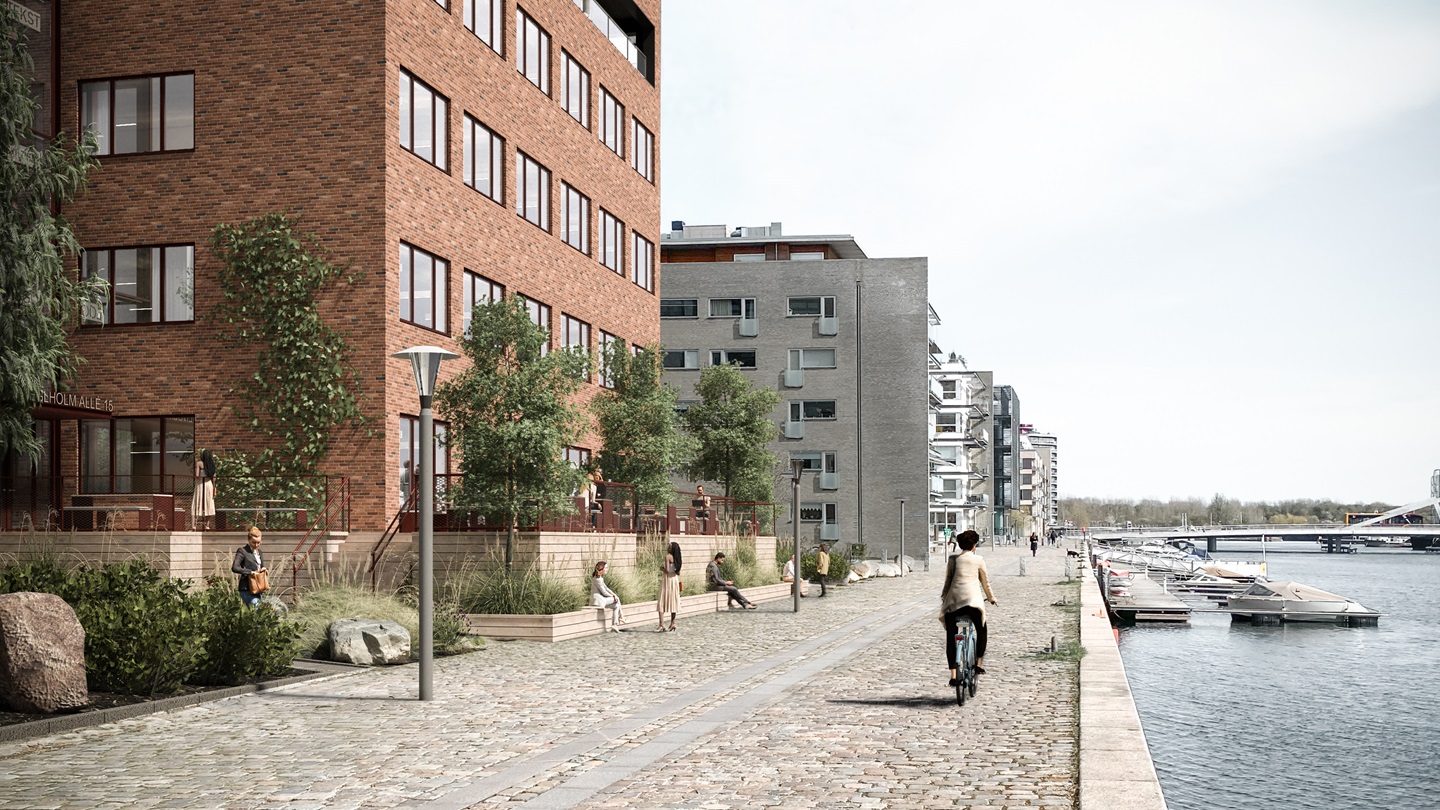 Fra denne moderne kontorejendom har du vandudsigt med fælles kantine og lækre trænings- og wellnessfaciliteter. Arkitekturen er enkel og lys med nordisk indretning, og så er beliggenheden sublim – helt ud til vandet og let tilgængelig både med bil, offentlig transport og på cykel.