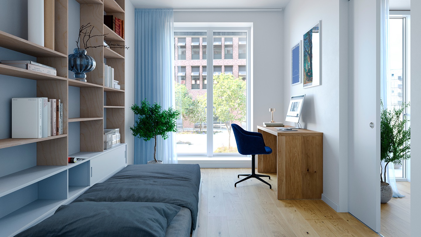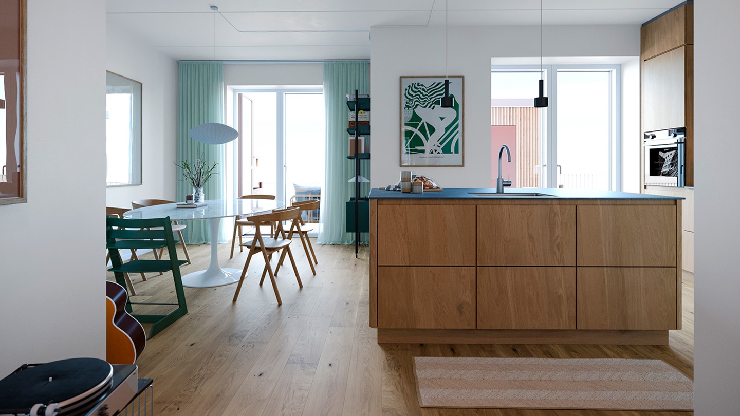Bo midt i byens puls – i nye lækre lejligheder. 81 lejeboliger først på Amager og tæt på Christianshavn. Stort set alle lejligheder har fransk altan og adgang til både tagterrasse og et stort fælleslokale.
