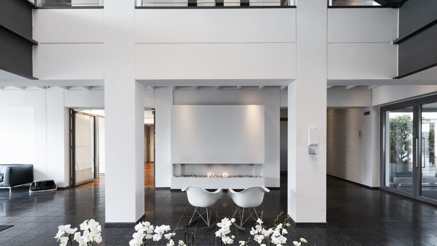 Her skulle være et kontorhus, der ikke alene stod smukt i balance med vandspejlet og de øvrige ydre omgivelser. Også indenfor var det tanken, at man skulle opleve naturens elementer; vand, ild, luft og lys.